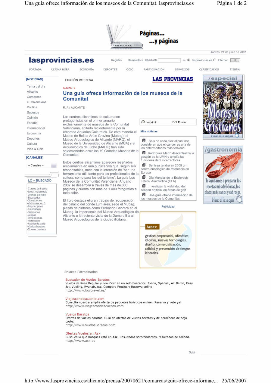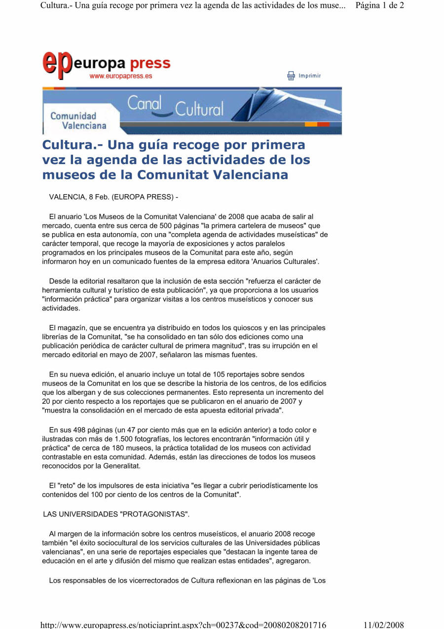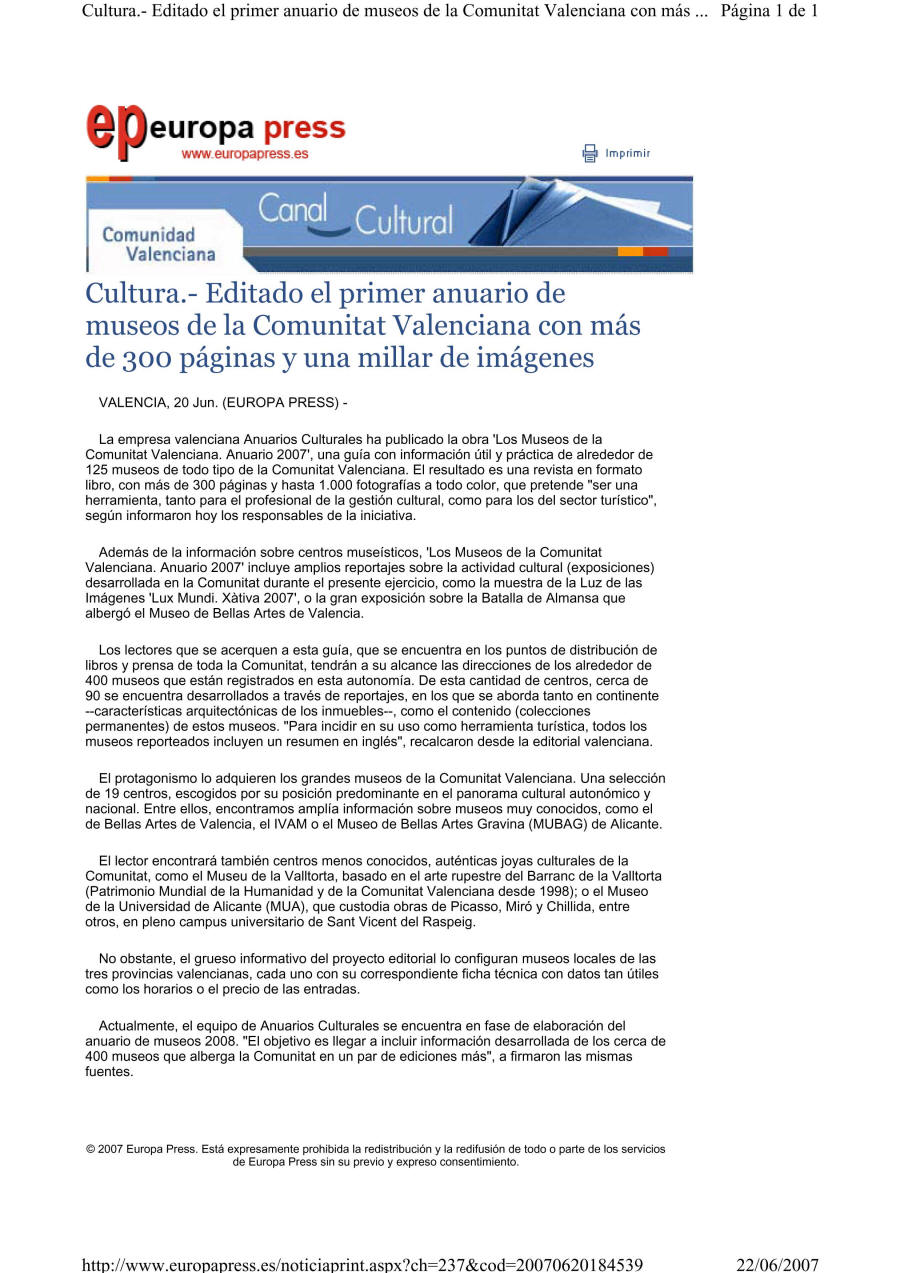 sus publicaciones, como el anuario de "Los Museos de la Comunitat