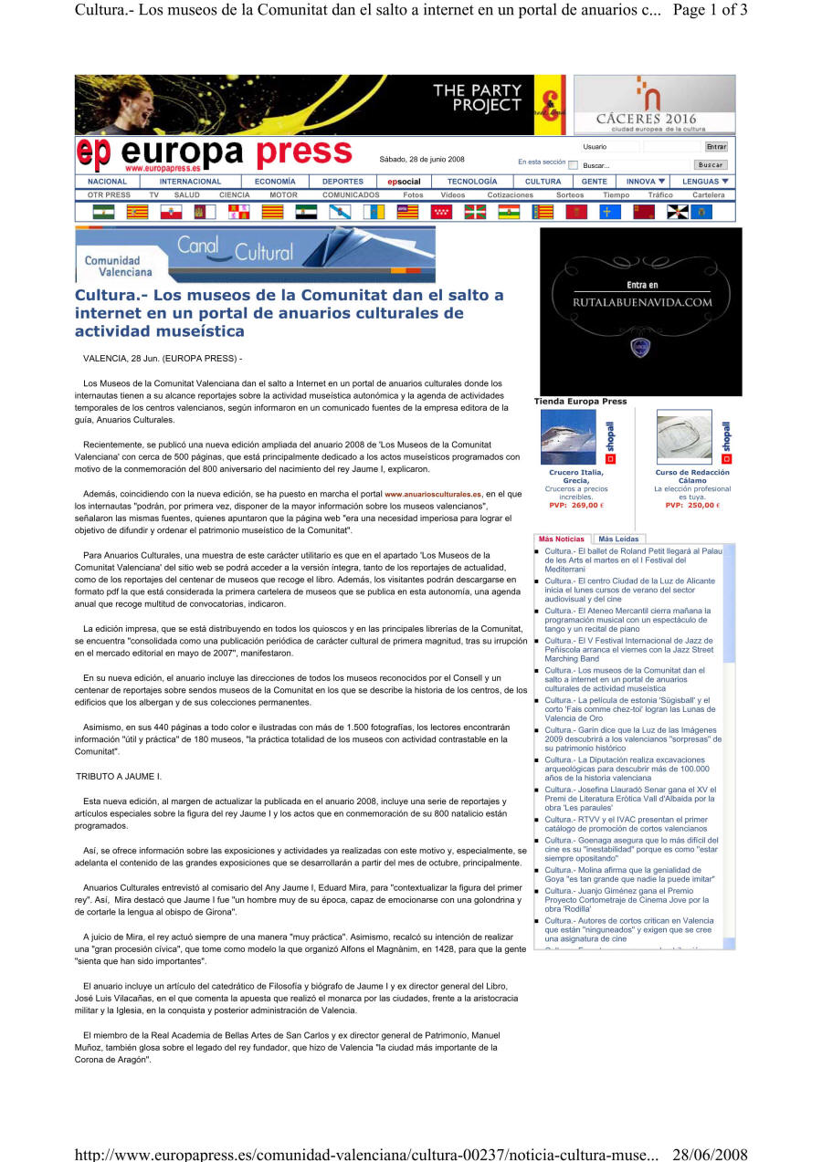 Anuarios Culturales ha sido recogida en numerosas ocasiones por la